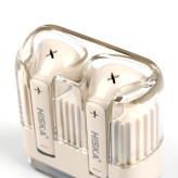 طراحی و تولید هندزفری بلوتوثی به دلیل حذف برخی از محدودیتهای گوشی موبایل مانند امکان مکالمه امن حین رانندگی، گوش دادن به موسیقی در حال ورزش و رفع مشکل پیچ خوردن و پارگی سیم هندزفری ها مورد استقبال بینظیر افراد قرار گرفت. هندزفری بلوتوثی هیسکا مدل FX-559 نمونهای باکیفیت از هدفونهای بلوتوثی است که سبک بوده و استفاده طولانی مدت از آن شما را آزار نمیدهد و میتوانید در هر موقعیتی به راحتی موسیقی مورد علاقه خود را گوش بدهید. بدنه هندزفری بی سیم هیسکا FX-559 از پلی کربنات نسوز و پلاستیک ABS ساخته شده که مقاومتی بسیار بالا را به بدنهی هندزفری داده؛ طراحی شفاف کیس آن، این محصول را از دیگر محصولات از نظر ساختاری متمایز کرده و فوقالعاده جذاب است. ابعادی برابر با 19*42*46 میلیمتر دارد. جمعوجور است و به آسانی درون جیب جا میگیرد. گوشیها از نوع نیمه در گوش هستند؛ در ساختار آنها خبری از کلاهک سیلیکونی نیست اما به خوبی در گوش قرار میگیرند و هنگام استفاده طولانی مدت هم احساس ناراحتی نخواهید کرد. هیسکا برای اتصال به هندزفری وایرلس FX-559، بلوتوث نسخه 5.3 را در نظر گرفته تا تجربه اتصالی سریع را برایتان به ارمغان بیاورد. برد مسافتی آن هم حدود 10 متر بدون مانع است. باتری لیتیوم پلیمری محفظه هدفون هیسکا ظرفیتی برابر با 300 میلیآمپر ساعت دارد و ظرفیت هدفونها هم برابر با 30 میلیآمپر ساعت است که با شارژ کامل میتواند 4 ساعت پخش موسیقی، در حالت مکالمه 3.5 ساعت مورد استفاده قرار گیرد. شارژ محصول توسط درگاه تایپ سی موجود در کیس به مدت حدود 2 ساعت انجام پذیر است. پنلهای لمسی که روی هندزفری وایرلس هیسکا طراحی شده، استفاده آسانتر را برای کاربر به همراه دارد. میتوانید از آن برای کم و زیاد کردن صدا، تغییر آهنگ، قطع یا وصل تماس تلفنی، پلی و پاز کردن موسیقی استفاده نمایید.