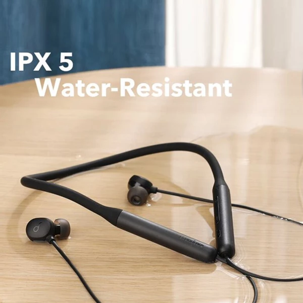 هدفون بلوتوثی گردنی انکر مدل A3213 U2i با نویز کنسلینگ میکروفون (ENC)، درگاه شارژ USB Type-C، دارای میکروفون با فناوری حذف نویز CVC 8.0، طراحی ارگونومیک و راحت، پشتیبانی از دستیار صوتی و فرمان لمسی، مقاوم در برابر آب